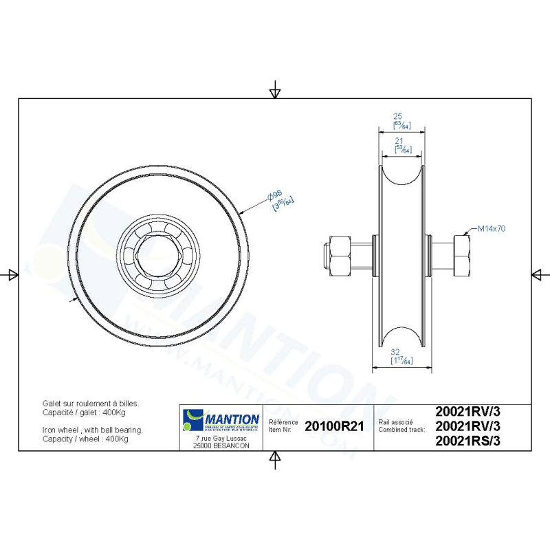 - Inhalt: 1 Stahlrolle Ø 100, Rundnut, Schraube M 14x70